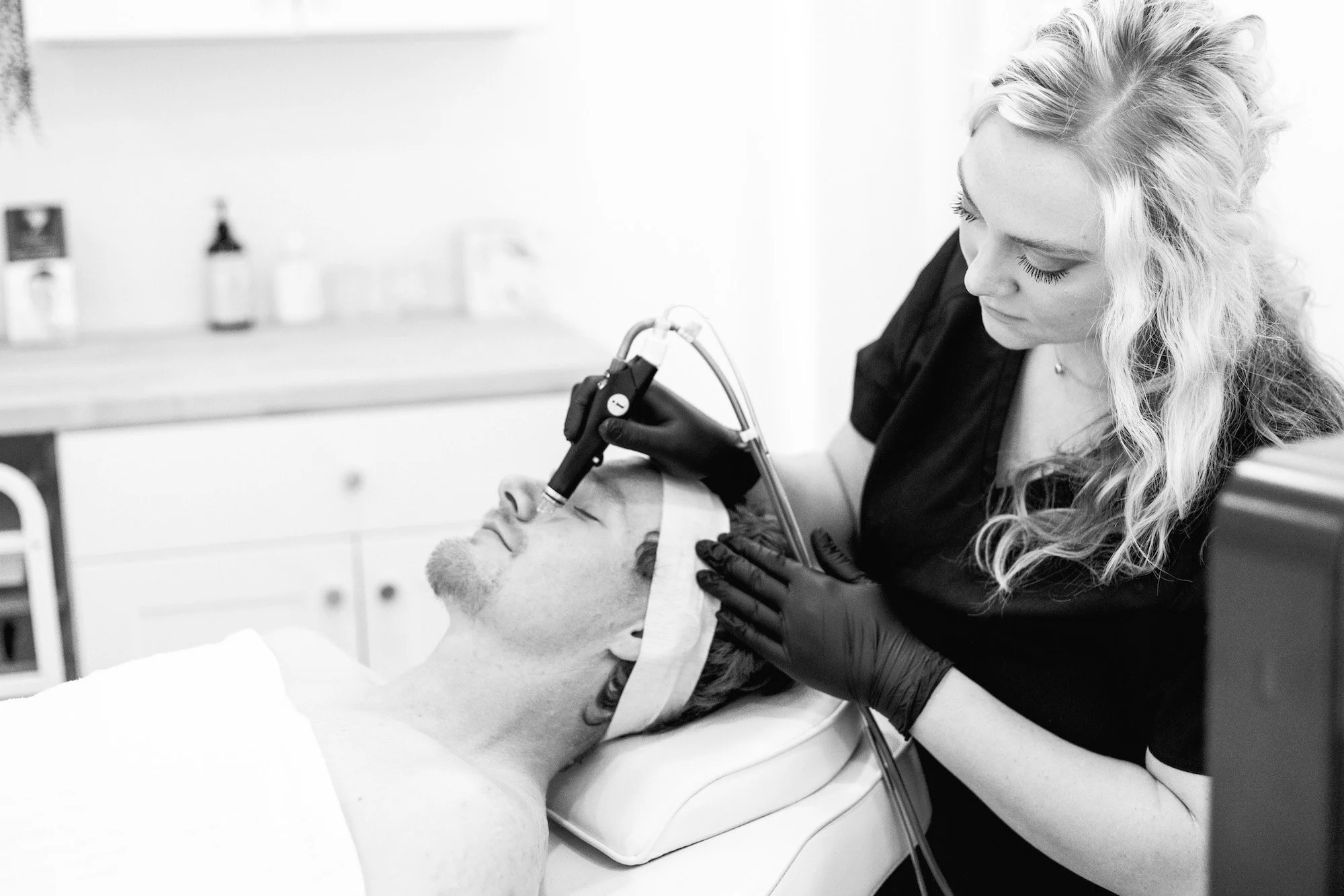 Before we start, we'll clean your skin and apply a numbing cream. This takes about half an hour to kick in, which is the perfect time to catch up on that podcast episode you've been saving. Many of our clients say this is the most relaxing part of their day!