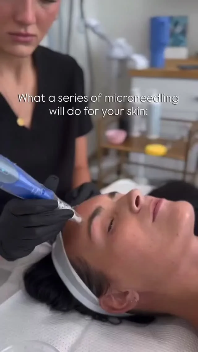 Microneedling stimulates collagen production by creating micro-injuries in the skin. This reduces fine lines, scars, and improves elasticity naturally.